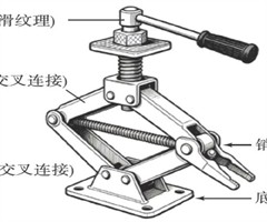 1主题引入:从生活场景锚定物理探究方向 在汽车应急换胎、日常维护的场景中,剪式千斤顶是当之无愧的“得力助手”一—仅凭一人之力摇动手柄,就能将数吨重的汽车稳稳顶起,实现小力胜大力的神奇效果.但使用过程中难免产生疑问:为何纤细的手柄能撬动沉重车...