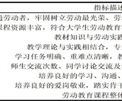 摘要:劳动教育是高校大学生全面发展的重要组成部分,也是高校立德树人使命的关键举措。课程作为高校劳动教育实施的重要载体,构建有效的劳动教育评价体系,评价劳动教育实施情况,对促进大学生劳动教育课程建设具有重要意义。该文在剖析OBE教育理念与新时...