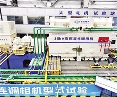 4月10日,由东方电气集团东方电机有限公司自主研发的全球首台35kV高压直连调相机当日顺利通过整机型式试验,各项性能指标优异,标志着我国在高压无功补偿装备领域取得重大突破。图为35kV高压直连调相机试验现场。 东方电气集团东方电机有限公司供...
