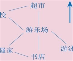 小朋友,在遇到位置与方向的相关问题时,首先要找到图中的方向标,确定图是否根据上北下南,左西右东画的,然后再根据要求回答问题。我们一起看看下面的问题吧! 例题1仔细观察图1回答下列问题 (1)超市在游乐场的( )面,游乐场的南面是( )。 (...