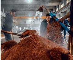 本刊记者 天光未启,茅台制酒十五车间工艺员田绍润早早到岗,与同样身着短褂、赤膊上阵的工友一道,开启茅台酒生命周期中最为关键、也最富仪式感的环节一下沙润粮。 被唤为“沙”的红缨子糯高粱,形似赤水河中的赭色泥沙,在进入首轮蒸煮发酵前,需经由滚烫...