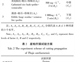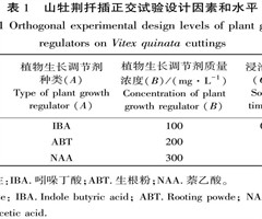 摘 要:为研究采穗部位、基质、生长调节剂质量浓度和浸泡时间对崖柏插穗生根率和根系质量的影响,寻求提高插穗生根率和根系质量的最佳处理方案,采用正交表L9(34),以基质、采穗部位和生长调节剂为因素,各因素下设3个水平,基质用草炭土-蛭石-珍珠...