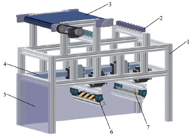Abstract:Sorting fresh tea leaves canachieve high value tea production,but fresh tea leavesare prone to agglomerationand dificult to disperse,which affects the sorting resultsand efficiency.In this paper,disperse aggregates in fresh tea leaves by cross airflow.The fresh tea leaf agglomeration dispersing device based on cross airflowconsists ofaframe,opposite-facing photoelectric sensor,conveyer belt,sliderail,observationplate,movable hinge,air nozle and other components.Based on CFD-DEM joint simulation,the influence of the air nozzleoffset, air nozzle line spacing,and tilt angle ofair nozle on the dispersion degree was analyzed.Design-Expert13 software was used todesign athree-factor,thre-levelorthogonal test protocol,and theoptimal parametercombination was obtained using response surface optimization.The experimental results show that when the air nozzle was arranged with theoptimal combinationof parameters,therectangular areaof dispersed fresh tea leaves obtained after dispersion was 0.343m2 ,and the percentage of fresh tea leavesareawas O.241,which were 90.6% and 50.6% higher than the tea fresh leaf material without dispersion,respectively.The relative erors between the experimental and predicted values was less than 5% . This device achieved effective dispersion of fresh tea leaf agglomerates, providing ideal material pretreatment conditions for subsequent accurate sorting.