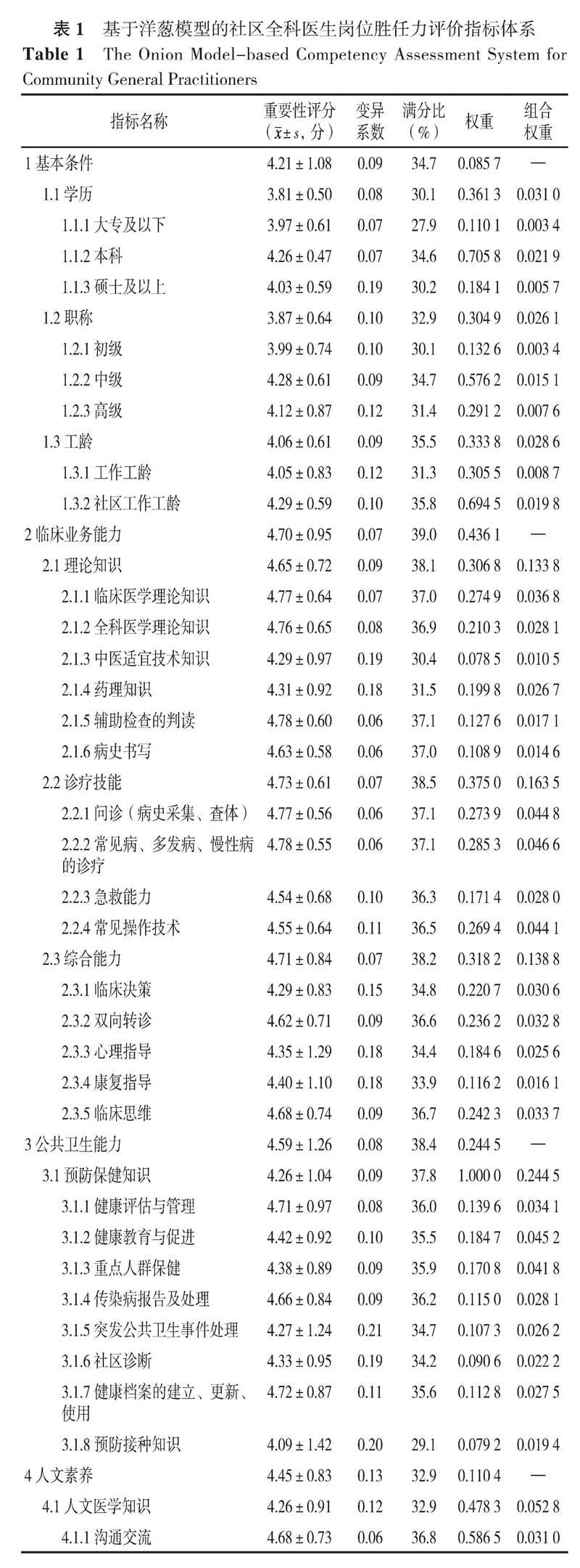 基于洋葱模型的社区全科医生岗位胜任力评价指标体系构建研究