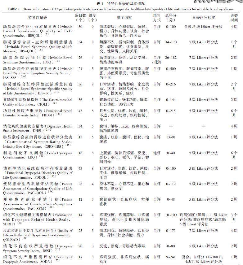 肠易激综合征患者报告结局与生命质量测定特异性量表研究进展