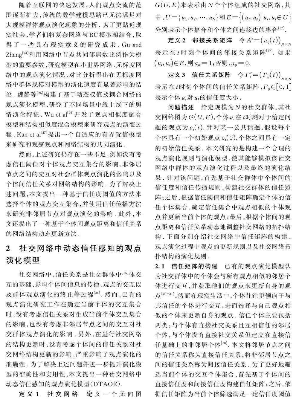 社交网络中动态信任感知的观点演化模型