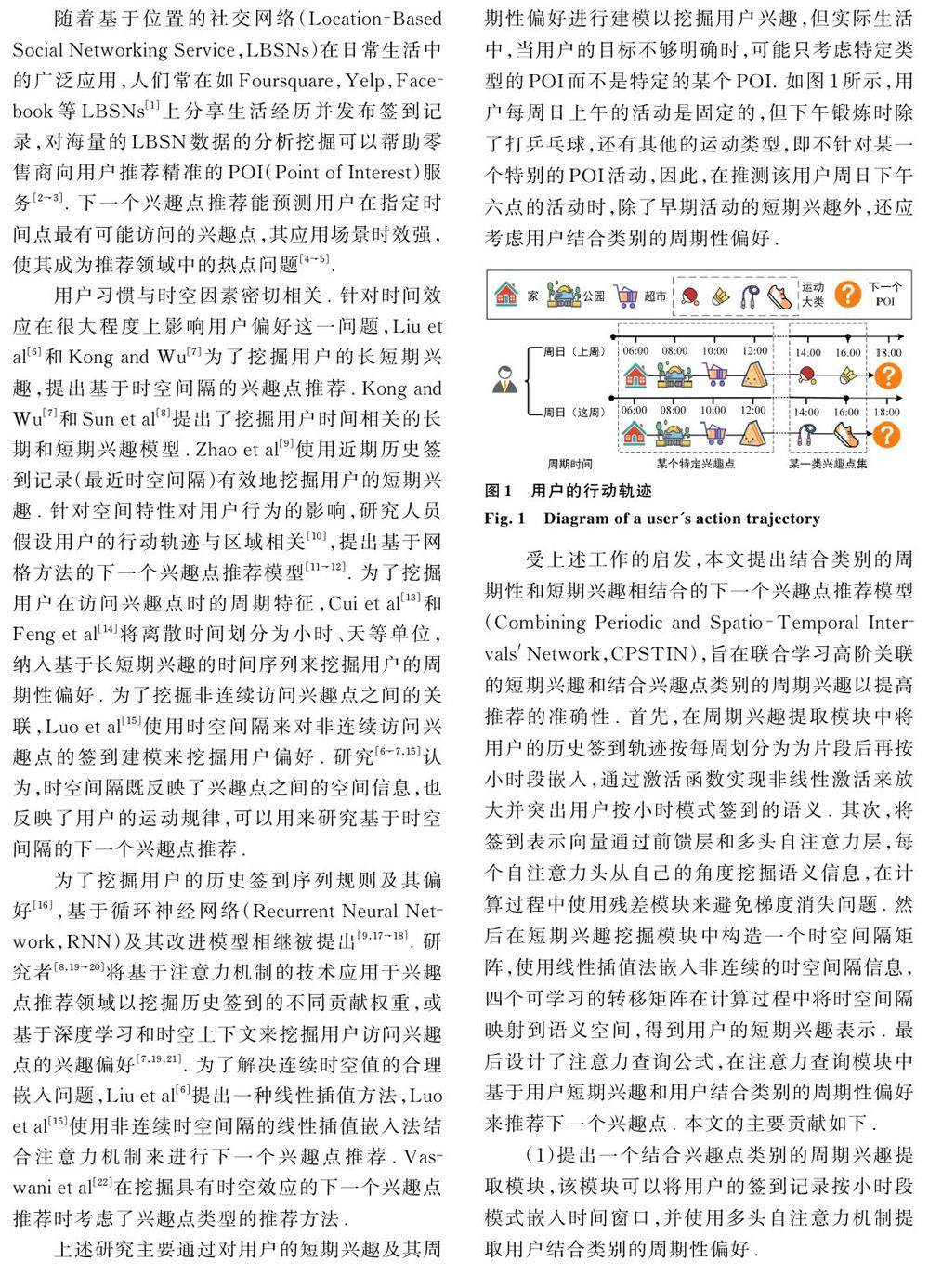 结合兴趣点类别周期属性和用户短期偏好特征的推荐模型