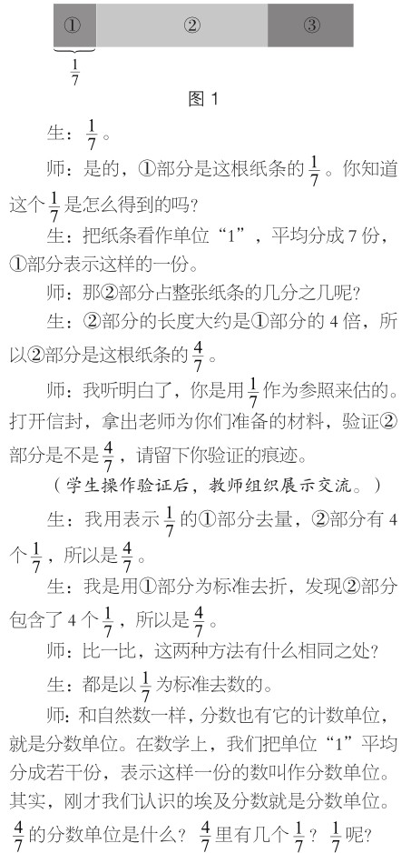 摘 要:分数单位的教学不仅要从平均分的角度帮助学生理解分数的意义,还应从度量的角度加深学生对分数意义的理解。特别要重视分数单位的理解,使学生充分感受分数单位的度量属性和累加价值,体会分数单位的度量意义,发展度量意识。