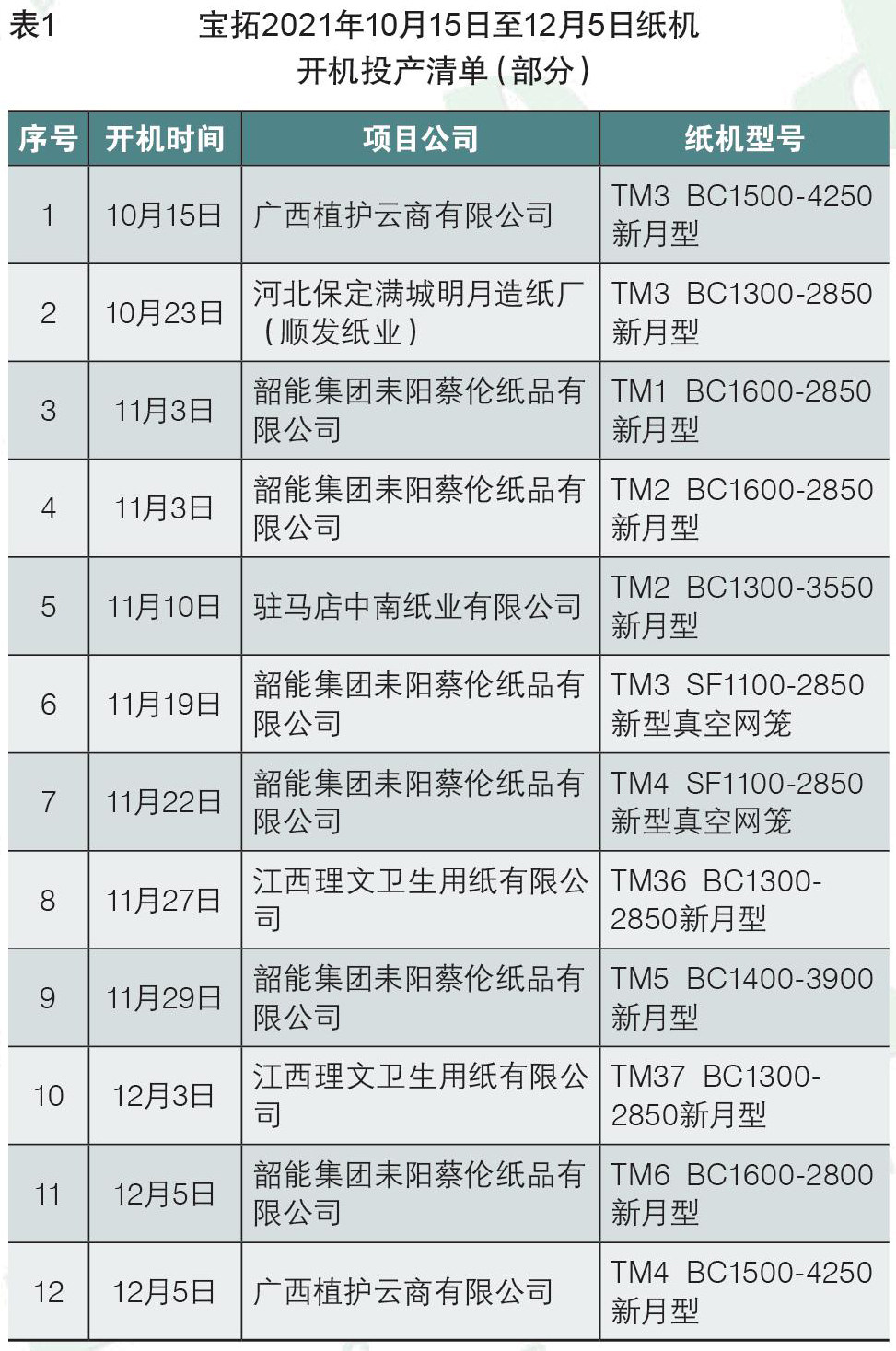按计划,在2022年春节前,宝拓将陆续有24台纸机在中顺、恒安、韶能、理文、植护等十几家企业开机投产。(剩余7字)