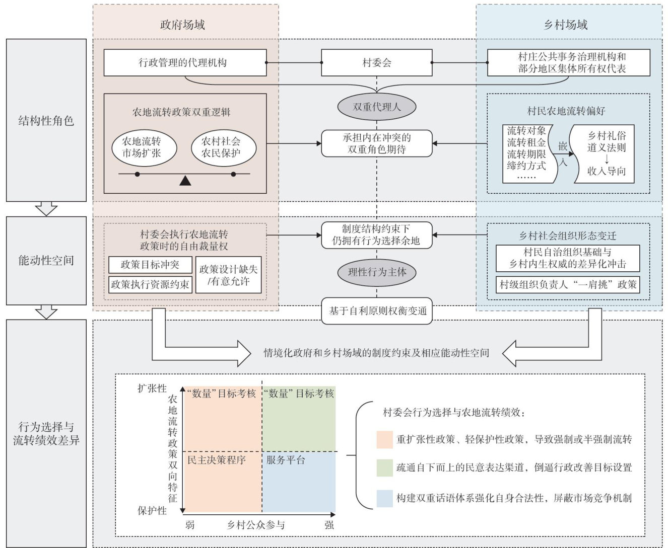 “乡政村治”格局下,村委会处在国家行政权力与乡村自主力量的交汇处,成为农地流转的重要行为主体,这为观察并改进农地流转的形成机制、运行过程及效果提供了恰当的切入视角。因应突破细碎化经营瓶颈的迫切需求,早期研究主要聚焦于村委会介人对农户流转意愿及规模等数量特征的影响。(剩余10874字)