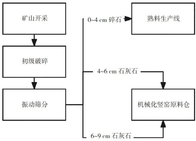 Abstract:This paper proposes a limestone particle size clasification utilization scheme for the problems such as low output,equipment blockage caused bysintering lumps,high labor intensityandout-of-control kilnconditions when using limestone with high magnesium content (average MgO 3.2% )and poor calcination effect from the ~ self-owned minein themechanized shaft kilndue tothe increase incoalratioandthe extensionofcalcination time:The O-4cm crushedstone isused in the clinker production line,and the4-6cmand 6-9cm particle sizes areused for the sintering ash inthe shaft kiln calcination.Practice shows that this scheme achieves 100% comprehensive utilization of mine resources,saves 33.6oO yuan in limestone procurement costs per kiln perday,reduces the number of kiln shutdowns from8-1O times per month to 2-3 times,and increases thequalified rateof ash output quality from 75 % -80%to 90 % 1 (204 95% , providing an engineering solution for the eficient utilization of low-grade limestone.