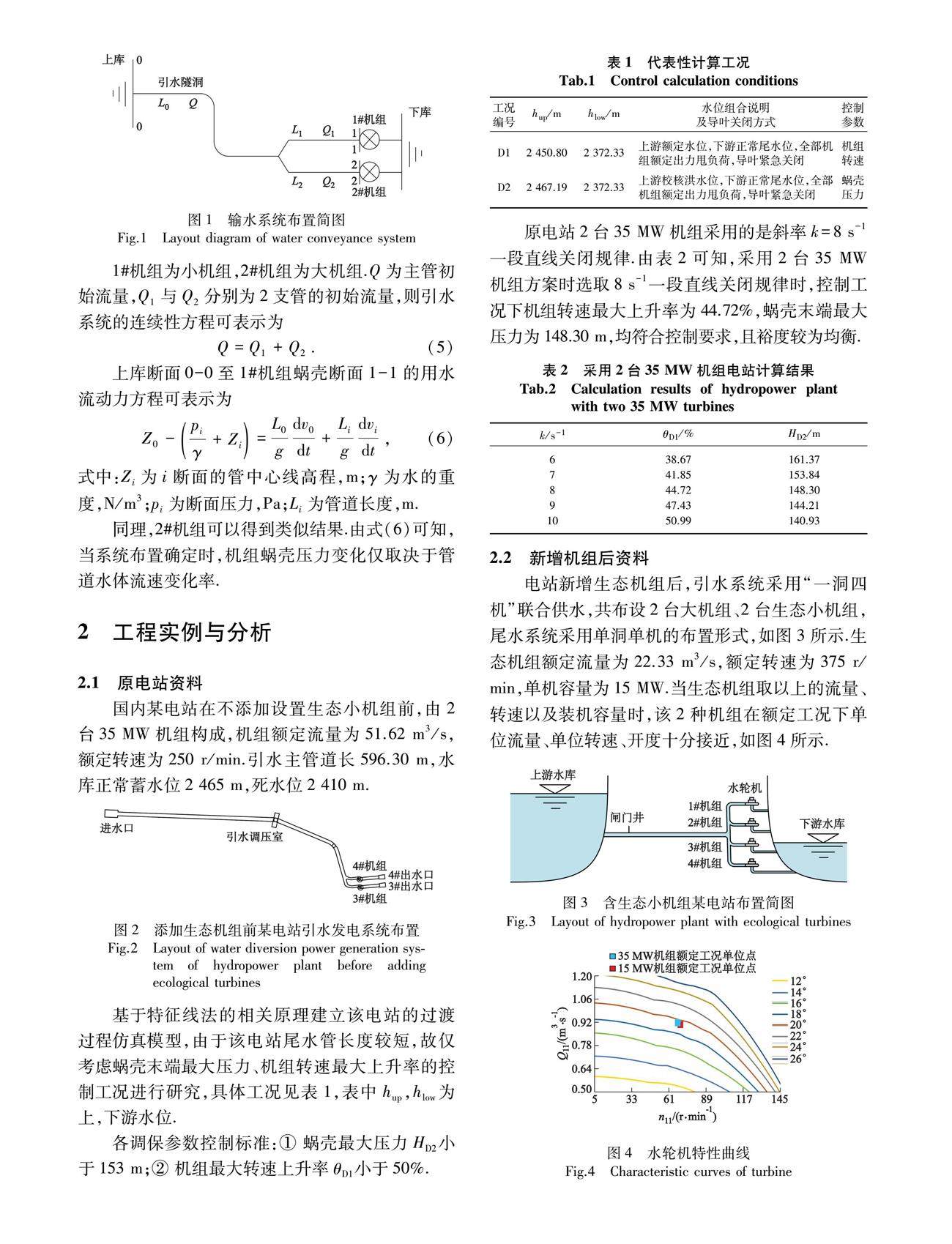 摘要: 扩建小容量生态机组是保证已建电站下游所需生态用水的有效方式之一.对于需要扩建机组的水电站,增设机组和原设机组选取的导叶关闭规律是否协调对于调节保证参数有着重要意义.基于特征线法建立了过渡过程仿真模型,探究设有不同装机容量机组水电站的导叶关闭规律组合,开展了新增生态小机组前后对电站调保参数影响(剩余11816字)