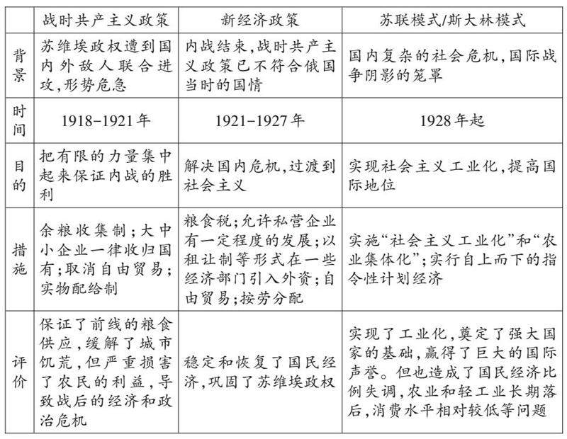 3. 了解从战时共产主义政策、新经济政策到苏联模式的演进,从史料实证角度认识苏俄(联)向社会主义过渡的曲折性和渐进性,并运用唯物史观评价苏联模式。(剩余885字)