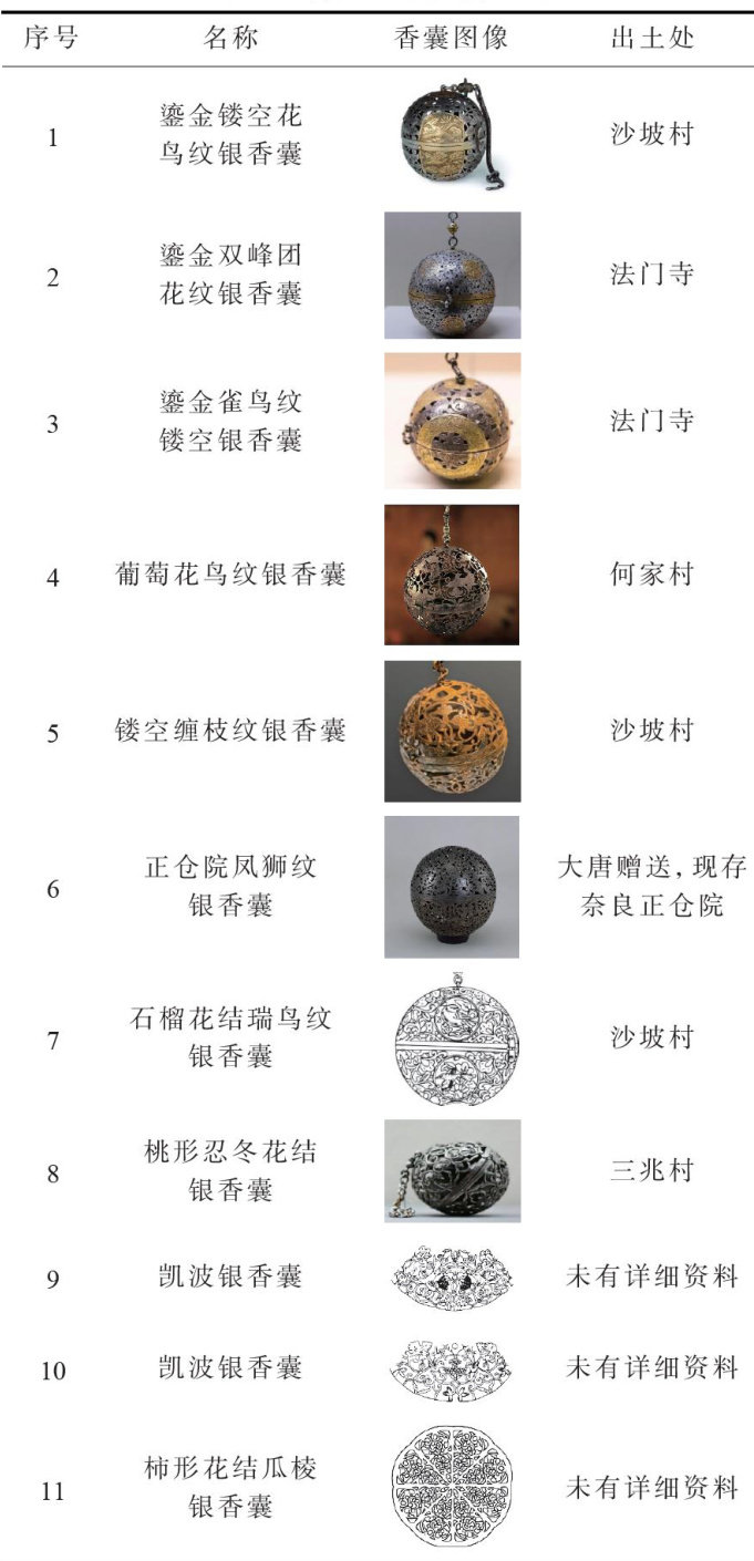 唐代经济和工艺美术发展十分鼎盛,金银器工艺尤其发达,也是熏香文化发展的黄金时期1。金银香囊作为唐代金银器工艺的代表之一,是别具一格的球形香炉,它既具备承香燃香的功能,又可用作装饰。香囊作室内熏香用时,通常悬挂于房梁之上或床帐四角,其金属光泽还可使屋内增加亮度,使室内光亮并盈满香气;香囊随身携带时,可悬挂于衣外,当作配饰使用,也可置于袖中,有着“暗香盈袖”的风姿。(剩余6222字)