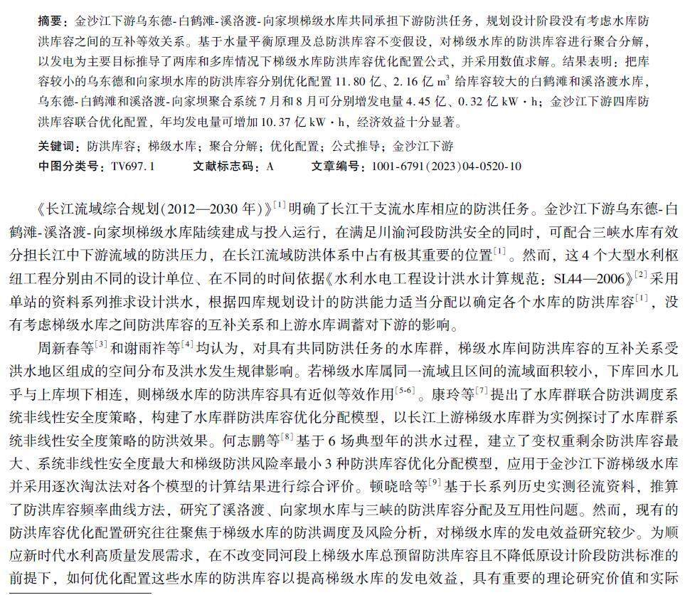 金沙江下游梯级水库防洪库容优化配置公式推导与应用