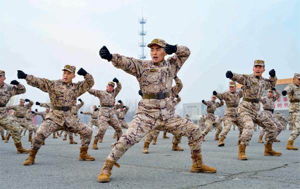 2026年1月,武警天津总队官兵开展擒敌训练。摄影/宫旭