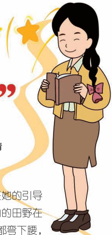 陈老师的声音像温柔的溪流,带着我们一遍一遍地朗读课文。在她的引导下,那些方块字仿佛被施了魔法,一个个跳了出来一一汇成“绿油油的田野在风中打滚”,变成“红艳艳的花朵朝我们挤眼睛”,连“黄澄澄的庄稼都弯下腰,说着秋天的秘密”。我们琅琅的读书声,是打开这幅长卷的“魔法咒语”。