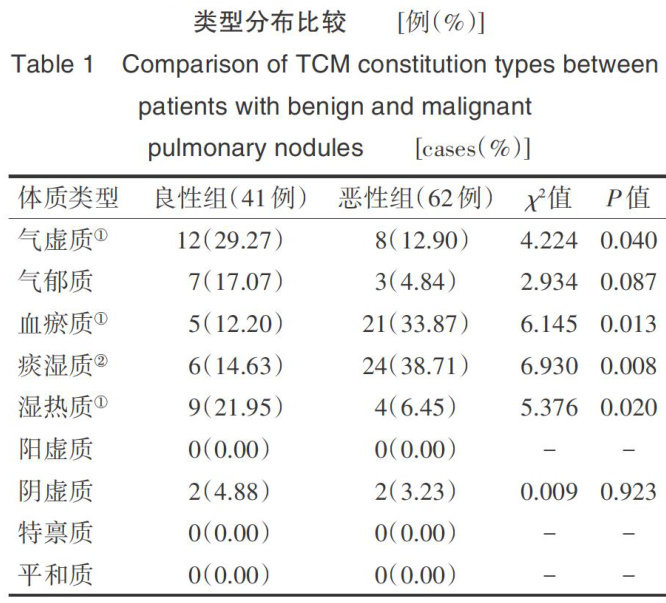 肺结节活检病理分型与中医体质、证型的相关性分析