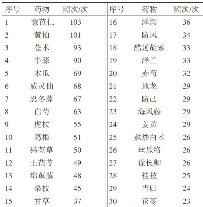 基于数据挖掘分析钟广玲治疗湿热痹阻证膝痹的用药规律