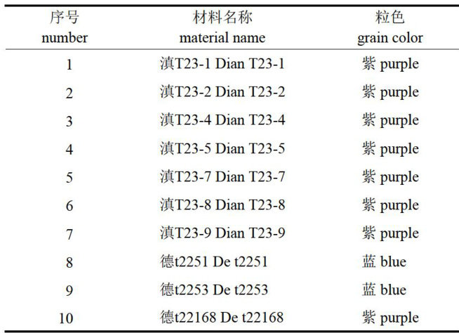 10份云南彩色小麦农艺与品质性状的 多样性分析与评价