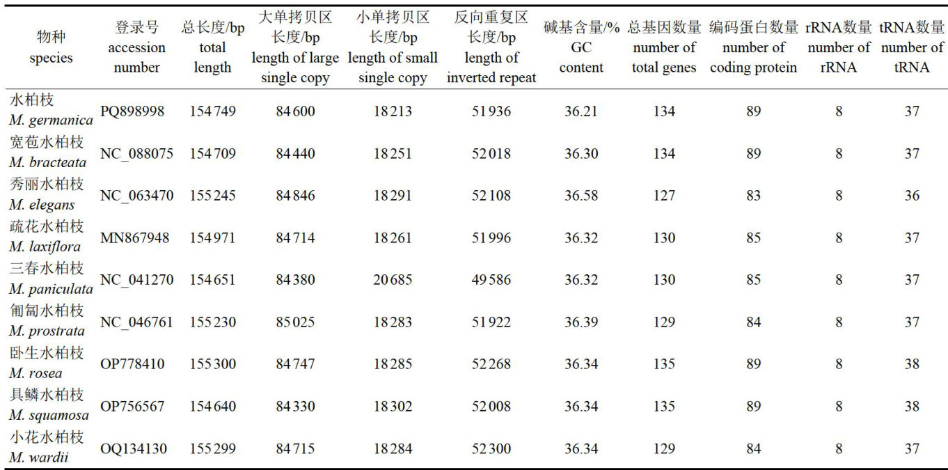 水柏枝叶绿体基因组特征及系统发育