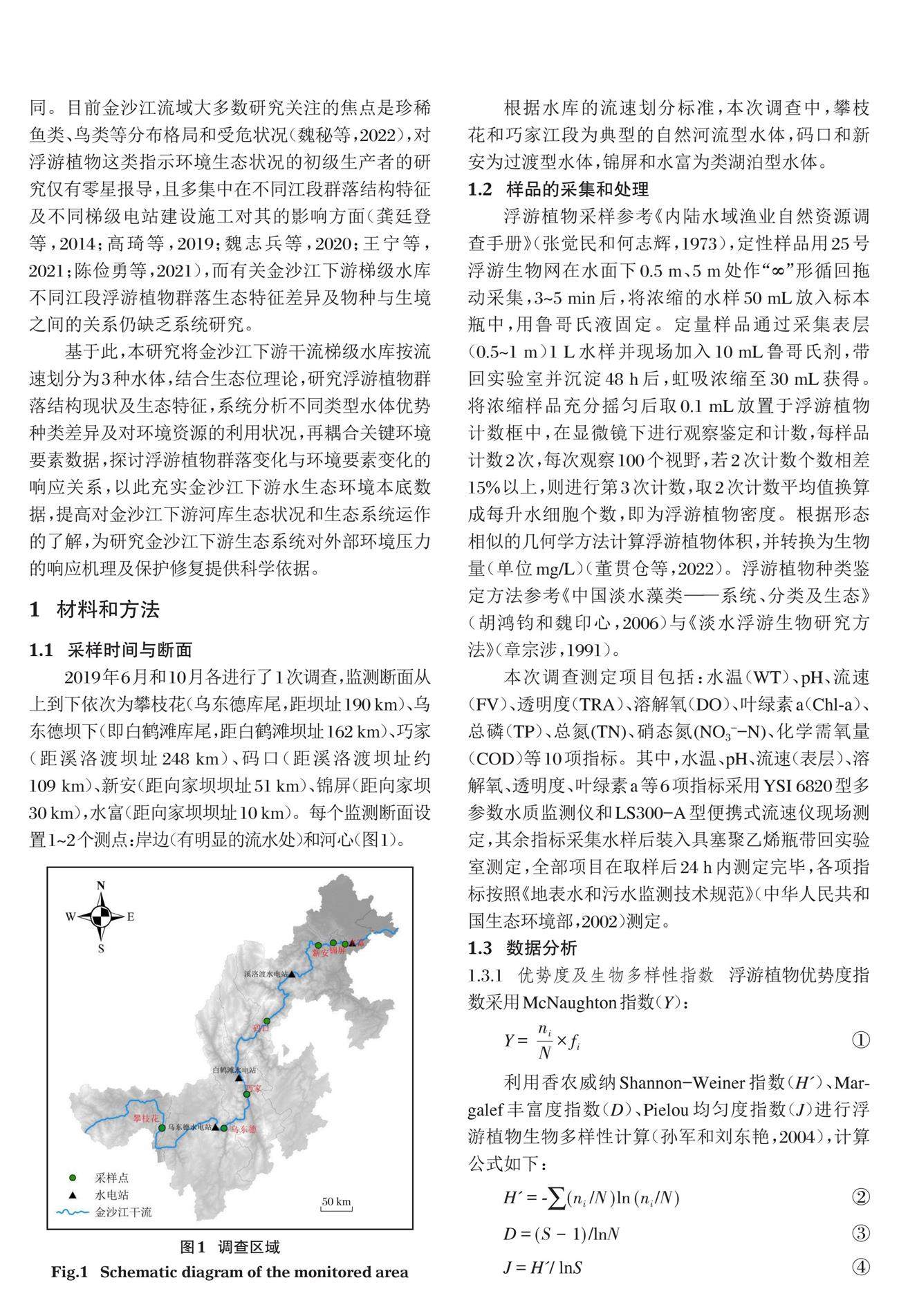 金沙江下游浮游植物群落生态特征及与环境因子关系