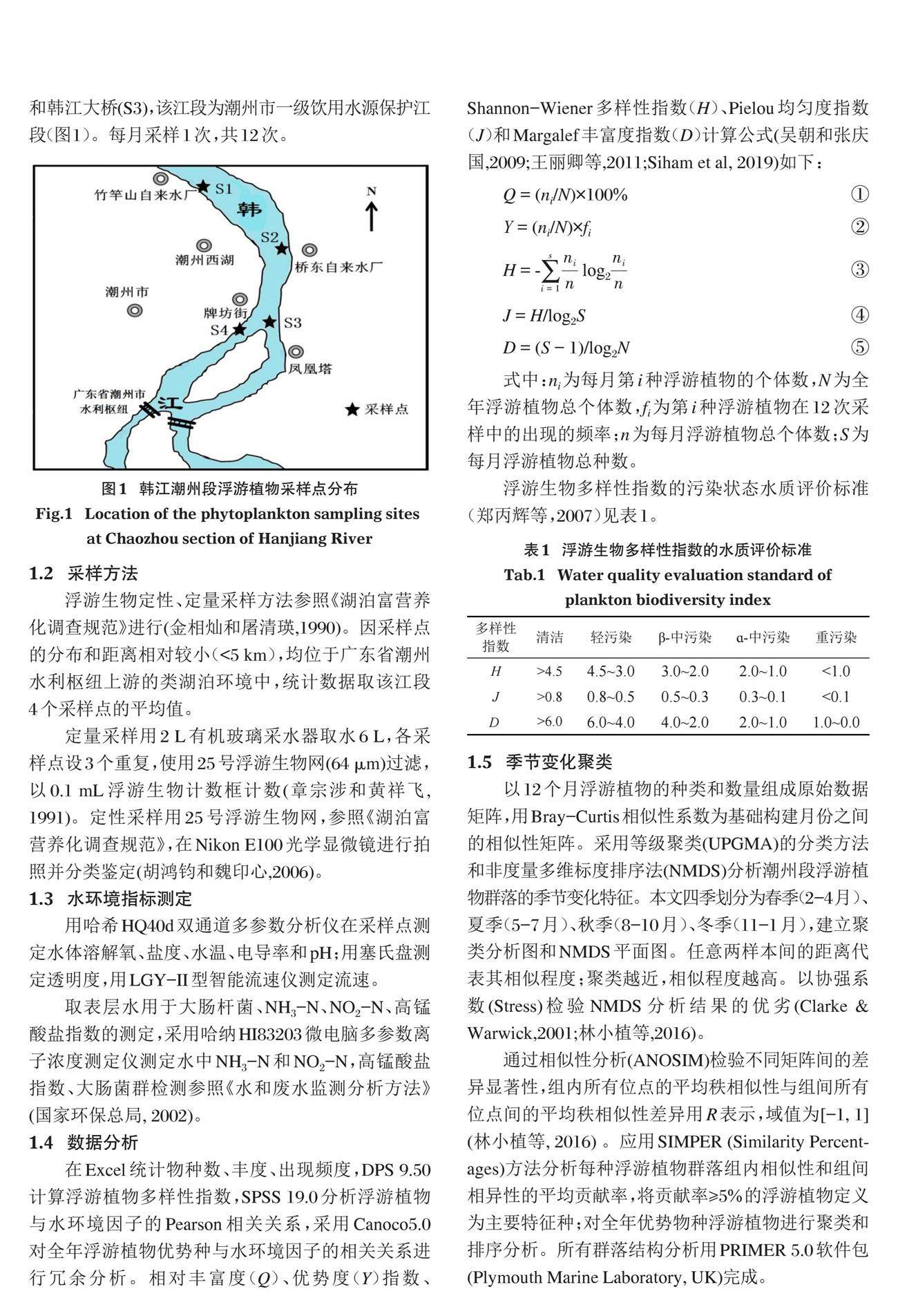 广东韩江潮州段浮游植物群落结构特征与水质评价