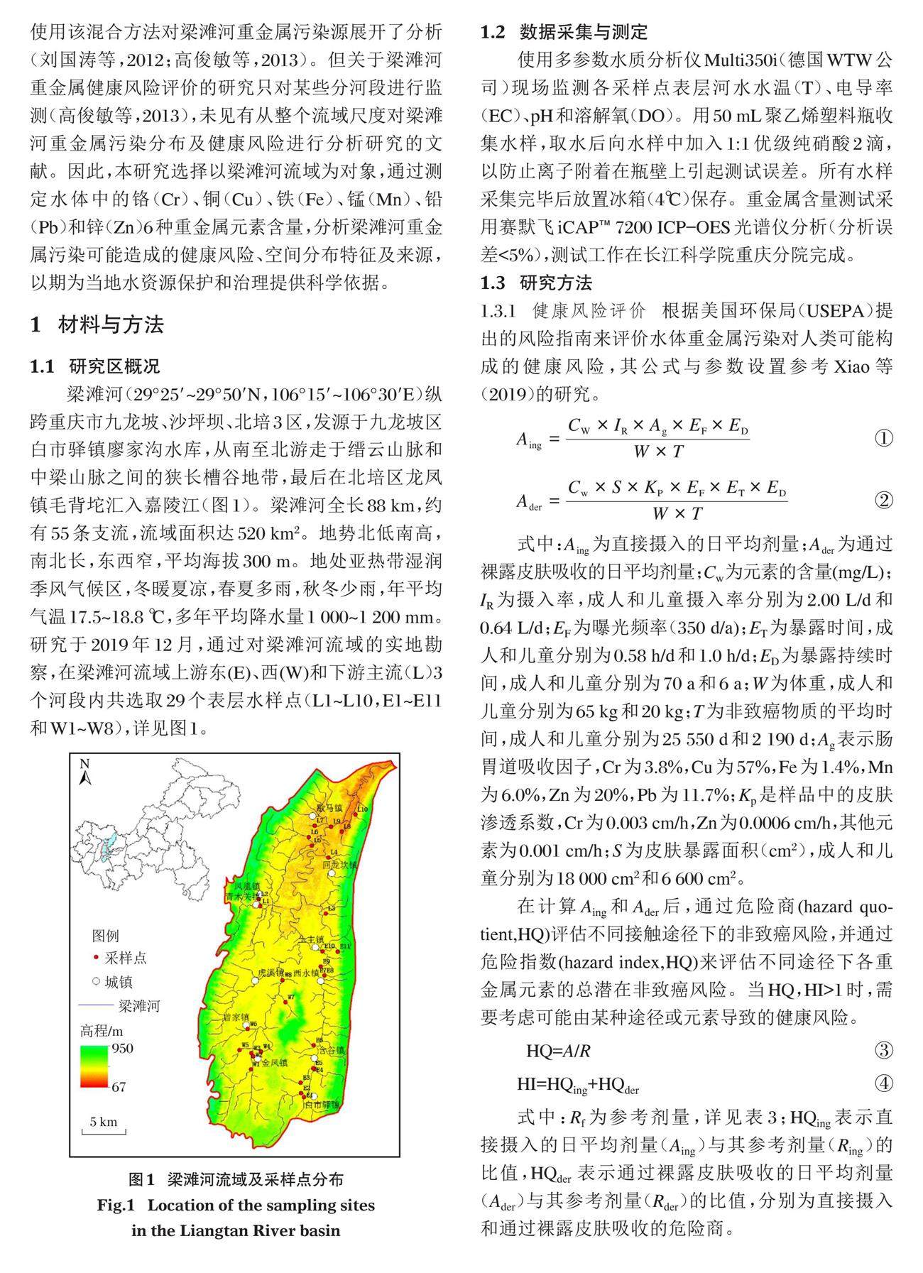 重庆市梁滩河流域重金属健康风险评价及来源解析
