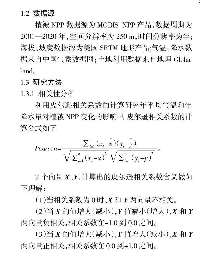 摘 要:为研究汉江流域襄阳市植被在自然环境下的生产能力,以及植被生产能力和人类活动的相互关系,该文以2001—2020年植被净初级生产力(Net Primary Productivity,NPP)数据为基础,利用CASA模型、GIS空间分析及数理统计等方法研究近20年襄阳市植被NPP时空变化特征,并利用皮尔逊相关系数,探讨NPP对气候和人类活动干扰的响应机制。(剩余7052字)