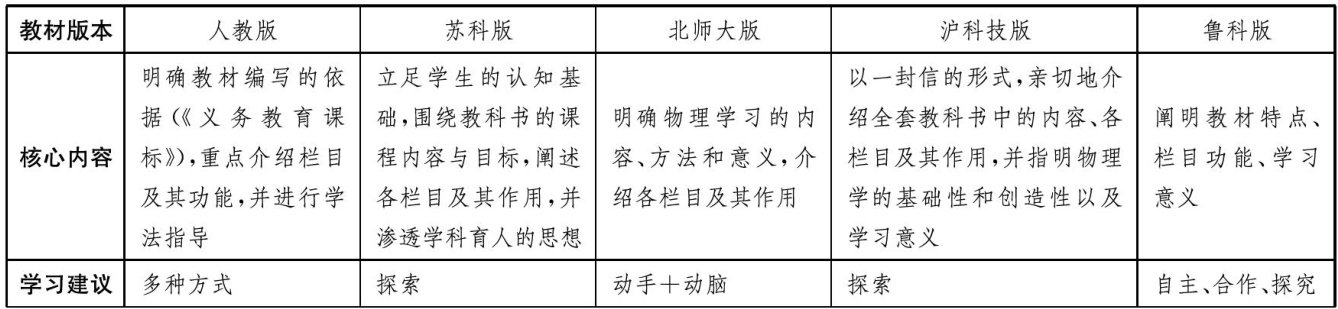 五个版本初中物理教材中“致同学”的比较分析与教学思考