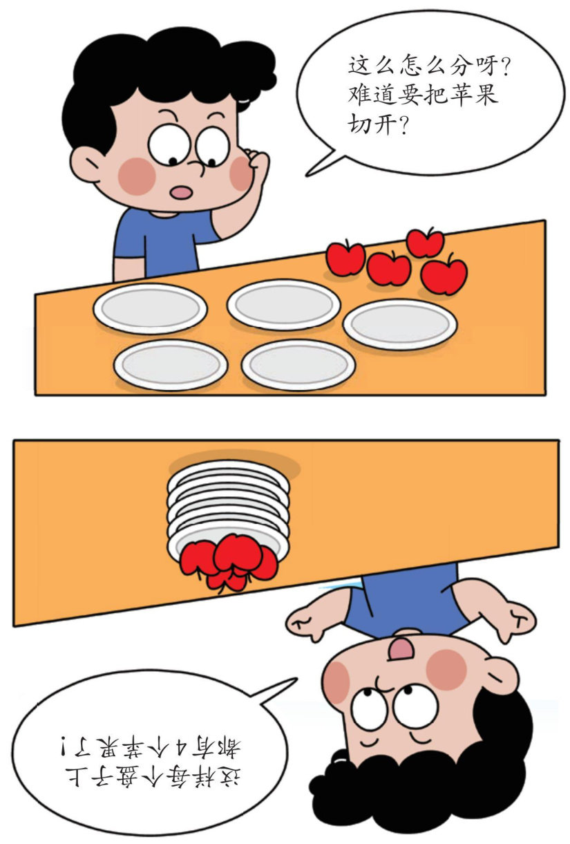 如何将4个苹果放到5个盘子上,使每个盘子上的苹果数量相同?