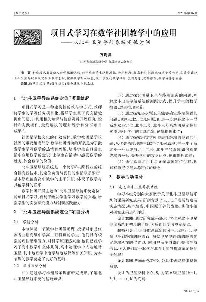 关键词:项目式学习;数学社团;北斗卫星导航系统1“北斗卫星导航系统定位”项目缘起项目式(剩余5478字)