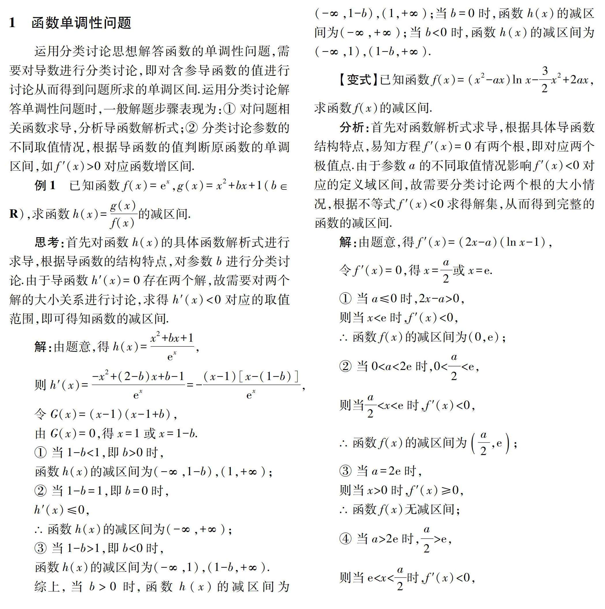 分类讨论思想解答不同函数题型的应用分析
