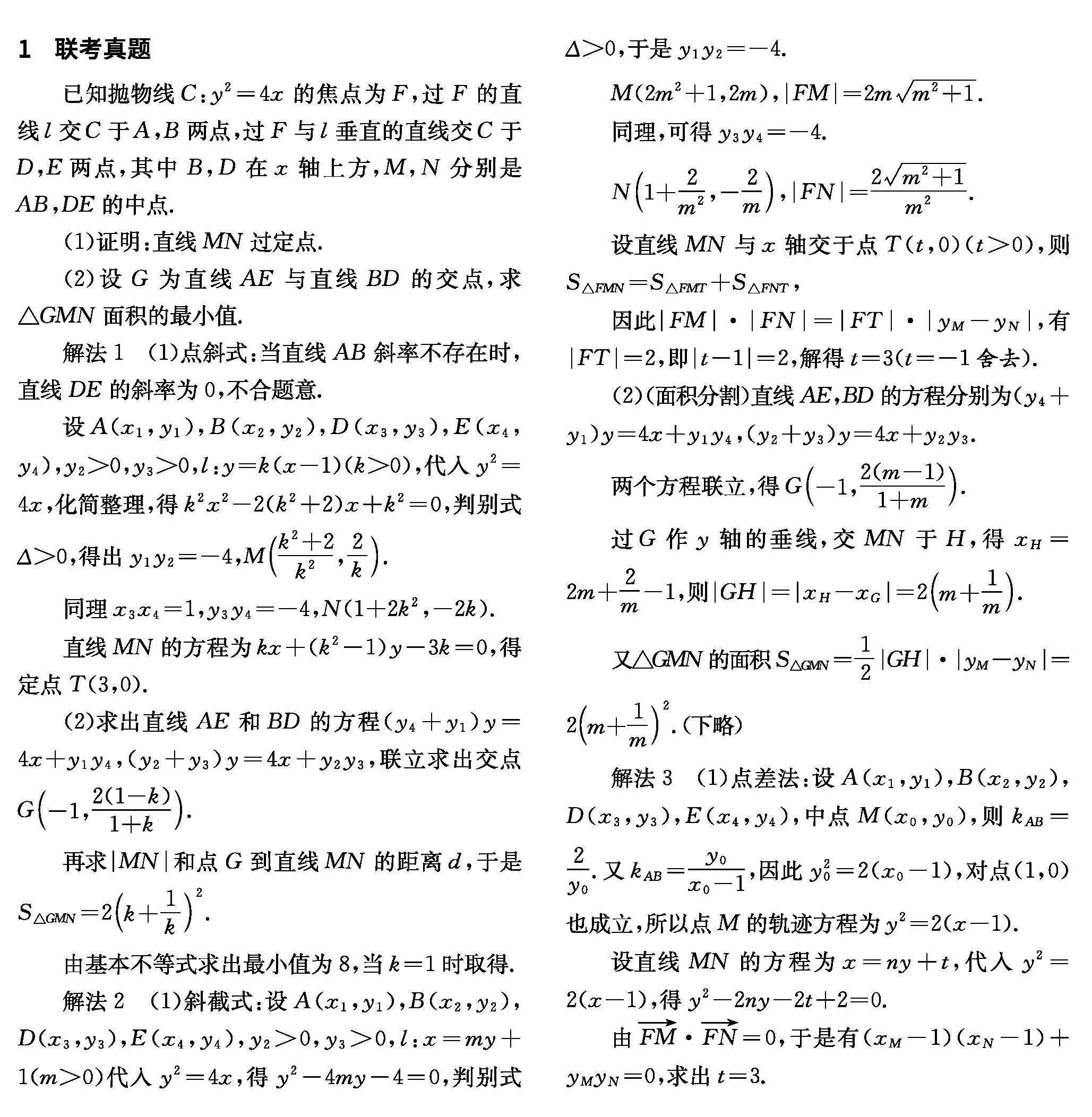 关键词:联考真题;解析几何;一题多解;深度(剩余3769字)