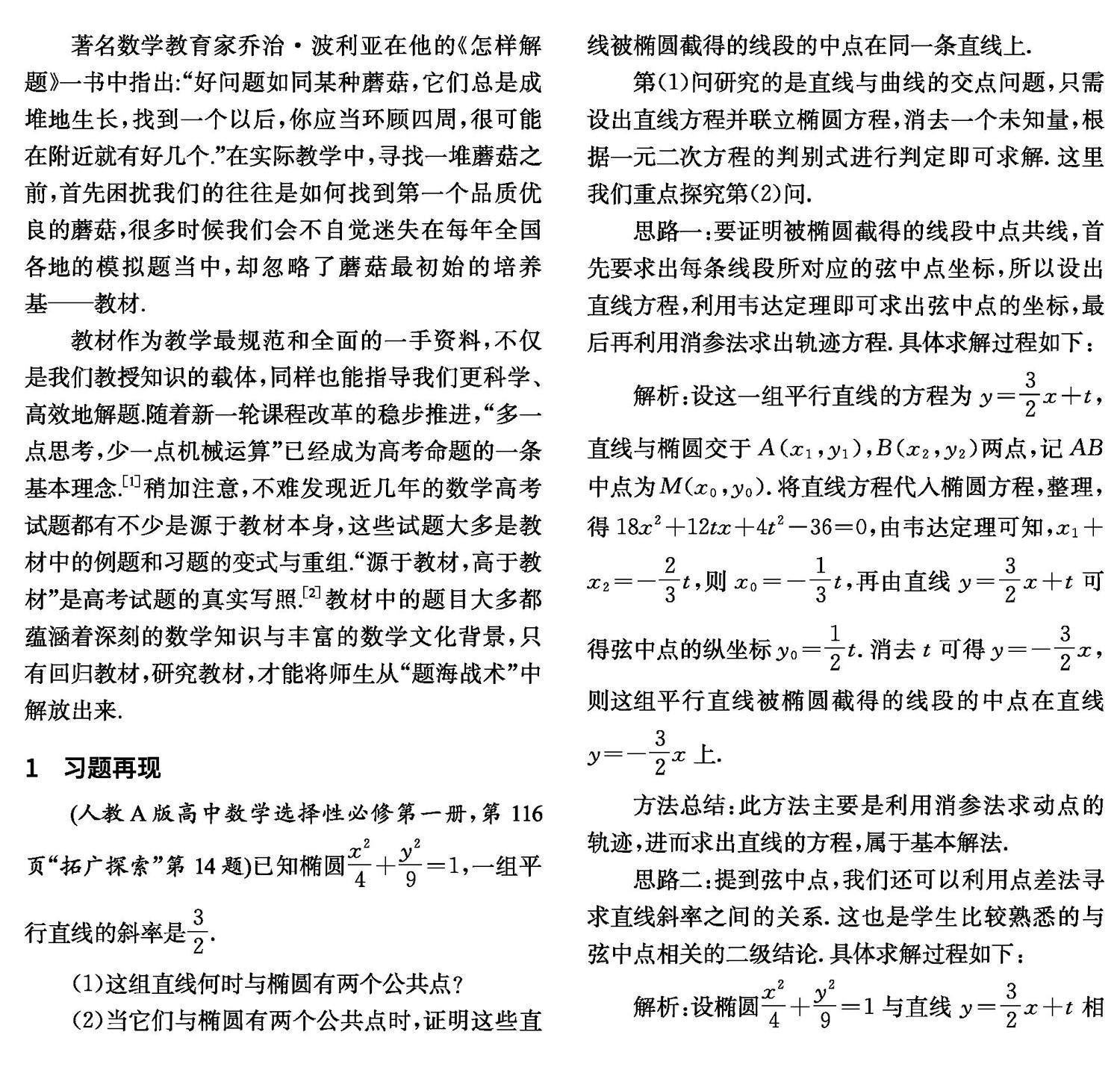 摘 要:教材是知识与方法最重要的载体,也是课标最直接的呈现形式,教材中甄选的习题有很好的代表性和延展性.在教学中我们要重视对教材习题的探究与发掘,由“个”到“类”,引导学生不断地变式探索,从一个蘑菇寻找一堆蘑菇,借助这个过程提升学生的解题能力,培养核心素养,发展解题的高阶思维.
