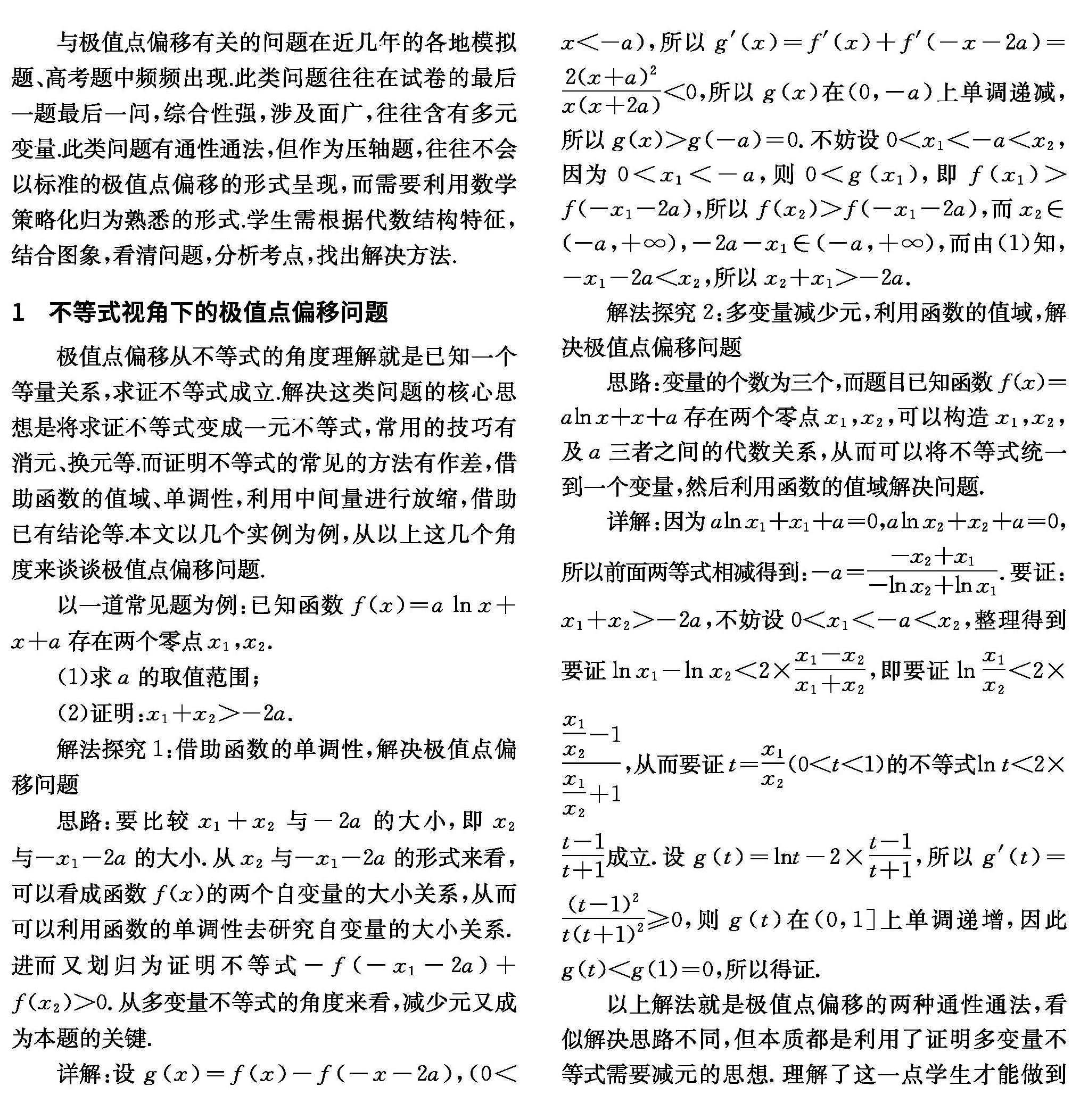从不等式角度看极值点偏移问题