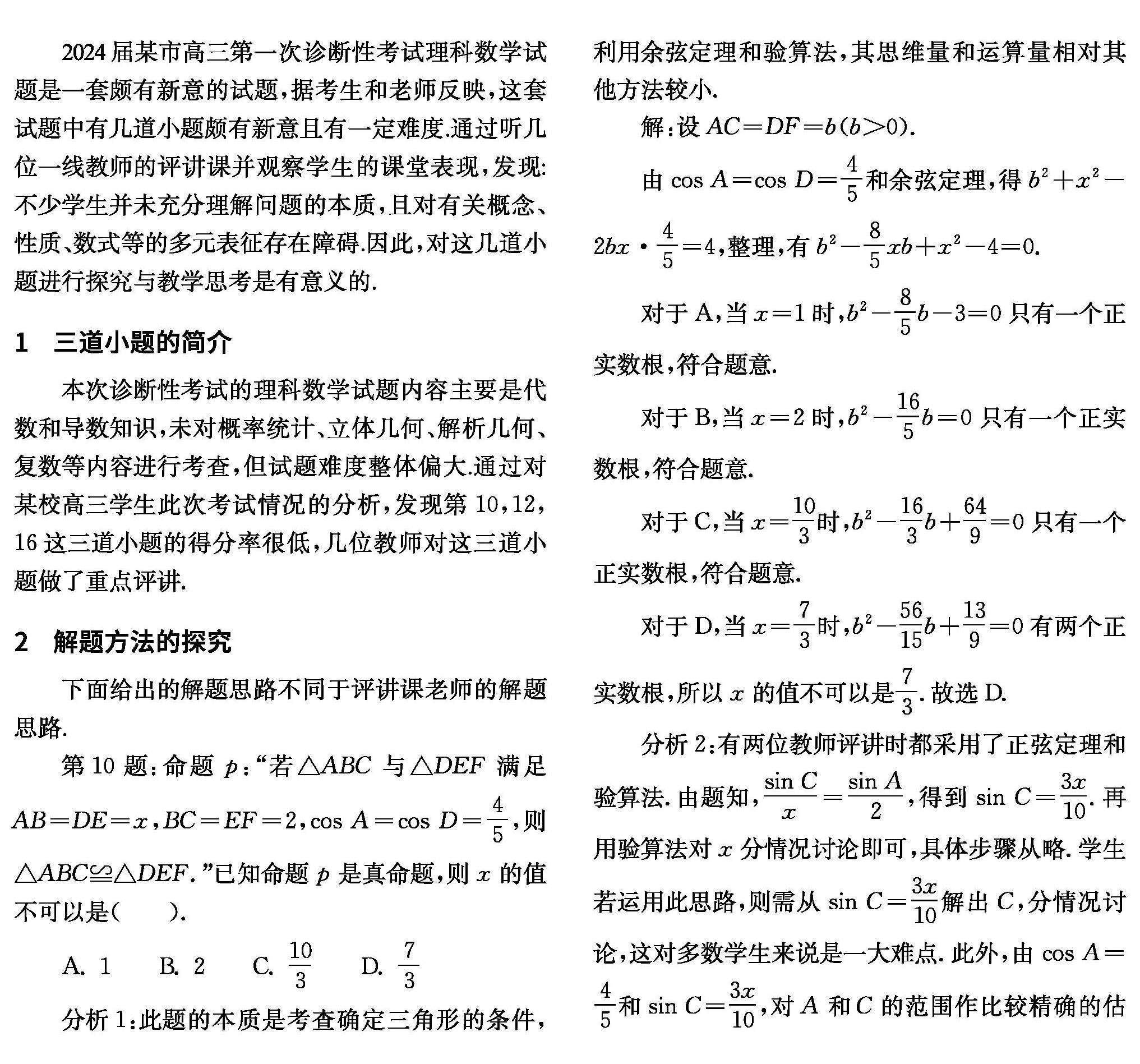 一堂高三数学试卷评讲课引发的探究与思考
