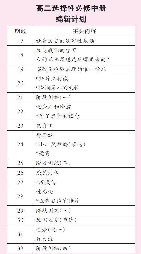 高二选择性必修中册编辑计划