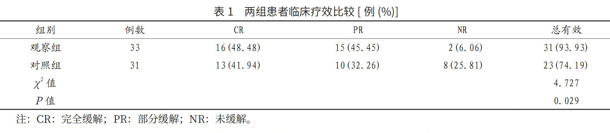 【摘要】目的 研究西达本胺联合氟达拉滨治疗复发急性淋巴细胞白血病的临床疗效,为临床治疗提供参考。方法 回顾性分析2015年3月至2018年3月昌乐县人民医院收治的64例复发急性淋巴细胞白血病患者的临床资料,根据治疗方法的不同分为观察组(33例,使用西达本胺联合氟达拉滨治疗)和对照组(31例,单一使用氟达拉滨治疗)。(剩余4330字)