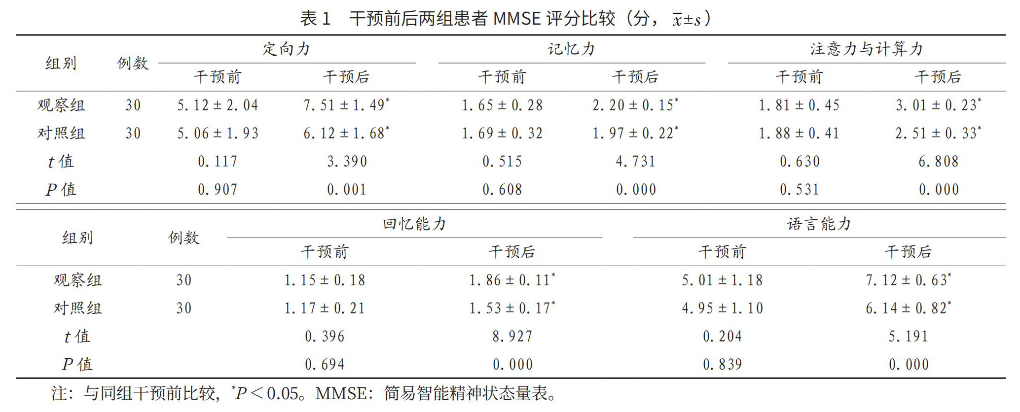 【摘要】目的 探讨关怀治疗对老年痴呆患者认知功能改善的价值,为临床提供参考。方法 选取2019年5月至2020年12月肇庆市第三人民医院收治的60例老年痴呆患者为研究对象,按照随机数表字法分为对照组和观察组,各30例。其中对照组患者给予常规干预,观察组患者在对照组基础上给予关怀治疗。比较两组患者干预前后认知功能、功能性沟通评分及生活质量评分。(剩余4151字)