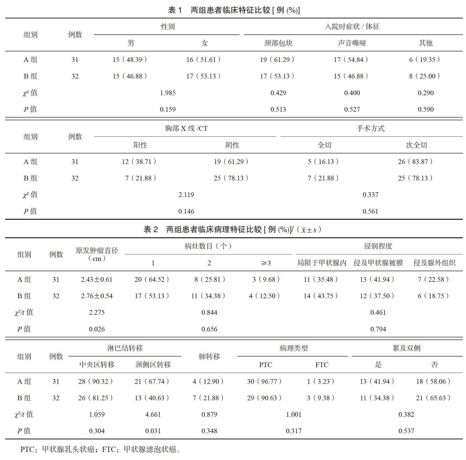 【摘要】目的 探讨青少年分化型甲状腺癌(differentiated thyroid cancer,DTC)的临床病理学特征。方法 选取2019年9月至2021年8月临沂市第三人民医院收治的63例青少年DTC患者,对其临床资料进行回顾性分析。按年龄进行分组,年龄≤14岁的31例患者为A组,年龄>14岁的32例患者为B组,分析临床病理学特征。(剩余5257字)