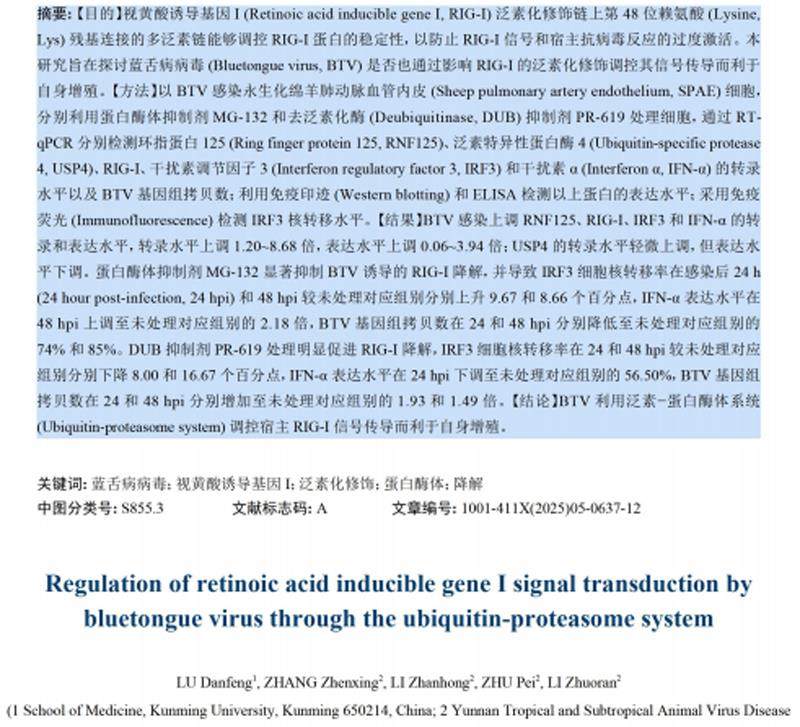 基于泛素—蛋白酶体系统的蓝舌病病毒对视黄酸诱导基因I信号传导的调控