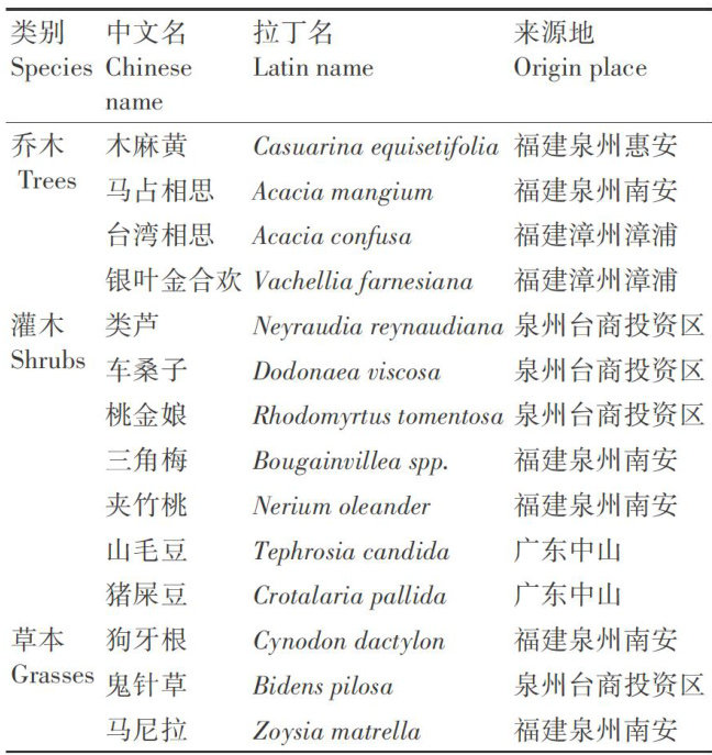 Absrtact:【Objective】This study screens appropriate revegetation plants for abandoned mining areas so as to establish bothatechnical and practical basis for restoring abandoned granite mining area.【Method】The plant traits of 14 revegetationspecies planted in the abandoned mining area were observed.Their growth increment and survival rate in the establishmentyear,along with preservationrateandcoverage inthethirdyear,were investigated toevaluatetheiroveal growth performance.【Result】Among the four tree species selected for revegetation,Casuarina equisetifolia and Vachelia farnesiana demonstrated the best overallperformance.Theyexhibitedrapid growth,abundant lateral branching,and high ground coverage.Both species maintained a preservation rate exceeding 70% after three years.Among the seven shrub species,Neyraudiareynaudiana,Dodonaea viscosa,and Rhodomyrtus tomentosa showedfavorableperformance with high preservation rates.Of the three herbaceous species,Cynodon dactylonachieved the highest coverage rateat 79.3%, indicating itscapacitytoforastablevegetationlayer.Insummary,nativespeciessuchas Casuarinaequisetifoli,Neyudia reynaudiana,and Cynodon dactylon exhibited the most superior growth performanceacross all categories.【Conclusion】 Basedonacomprehensive evaluationof plant growth performance,Casuarina equsetifolia,Vachelia farnesiana,Neyraudia reynaudiana,Dodonaea viscosa,and Cynodon dactylonare recommended as suitable species for revegetation in abandoned granite mining area.