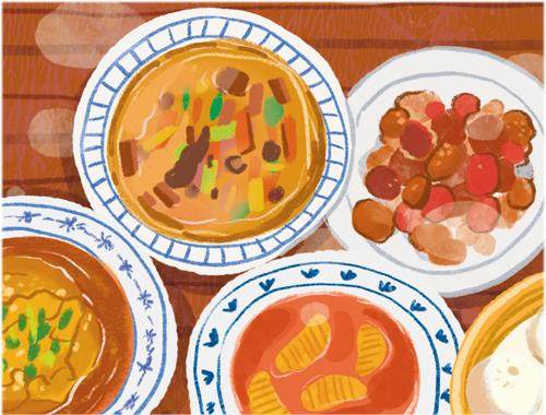我坐在餐桌旁,发现这个餐桌和普通餐桌没啥区别,倒是服务员端上来的每一道热菜里都有汤,这些菜吃起来还都有胡椒的辛辣味儿和一点点酸味儿。(剩余376字)