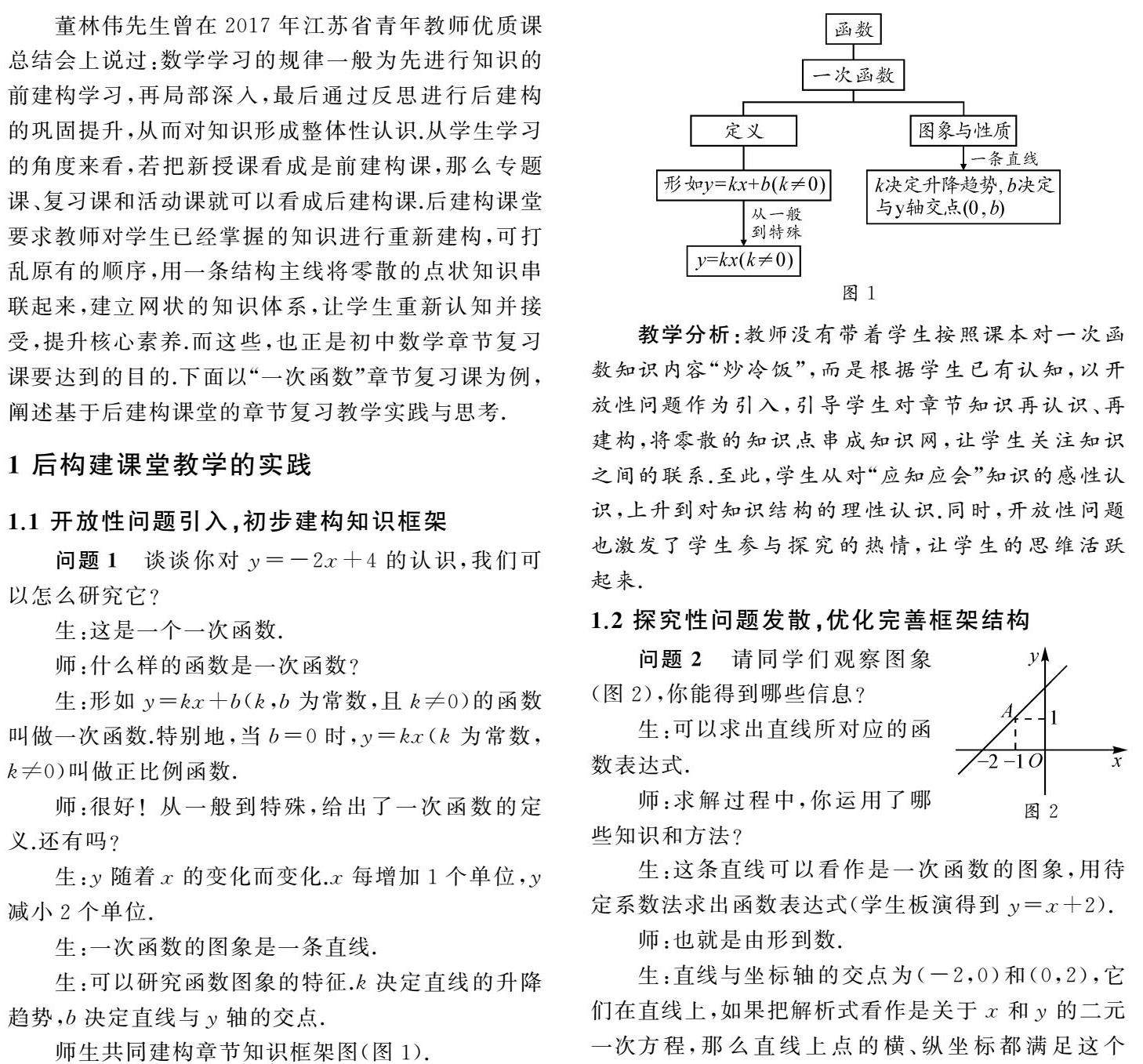 关键词:后建构课堂;章节复习;一次函数;核心素养