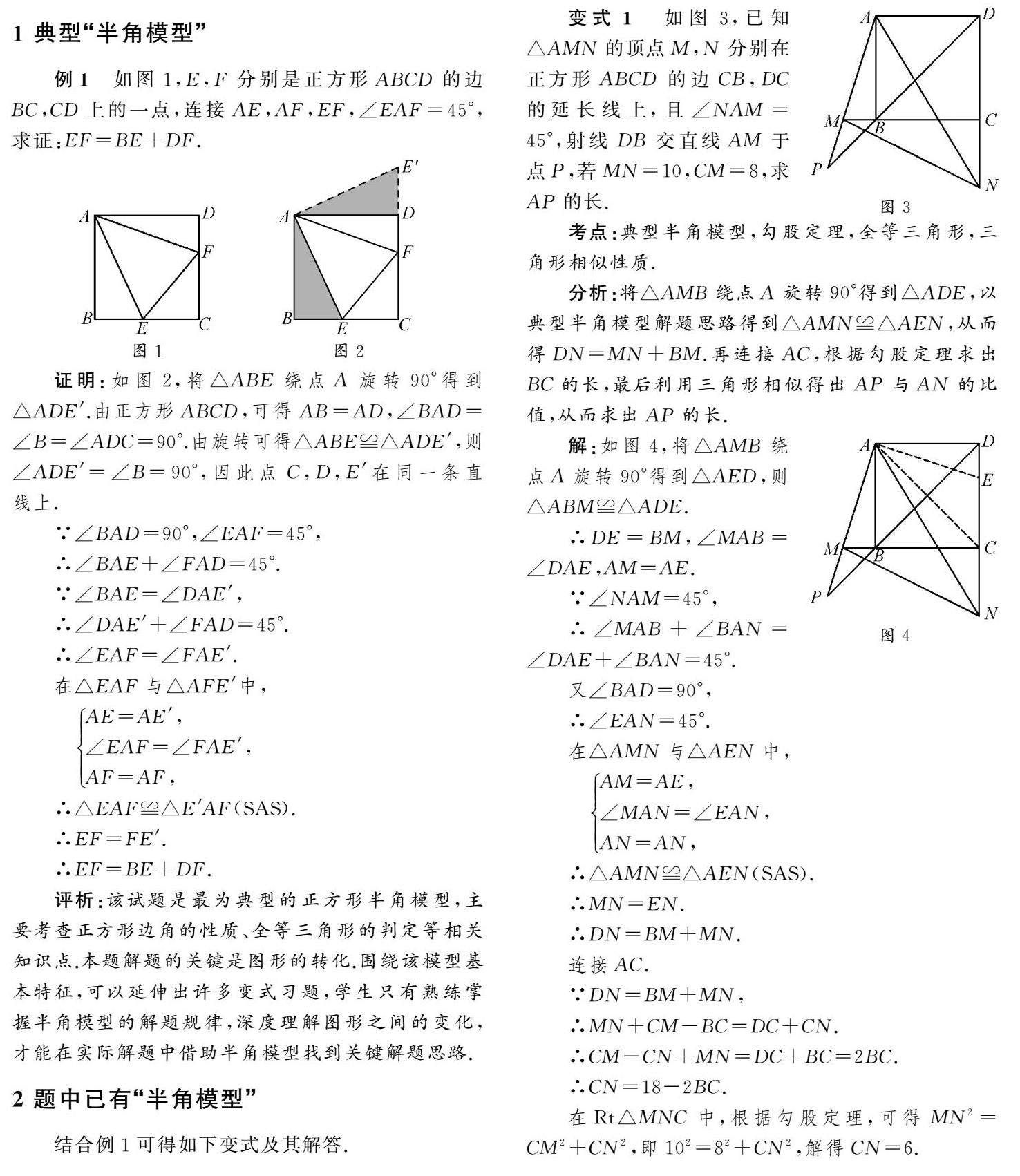 借助半角模型 提升解题能力