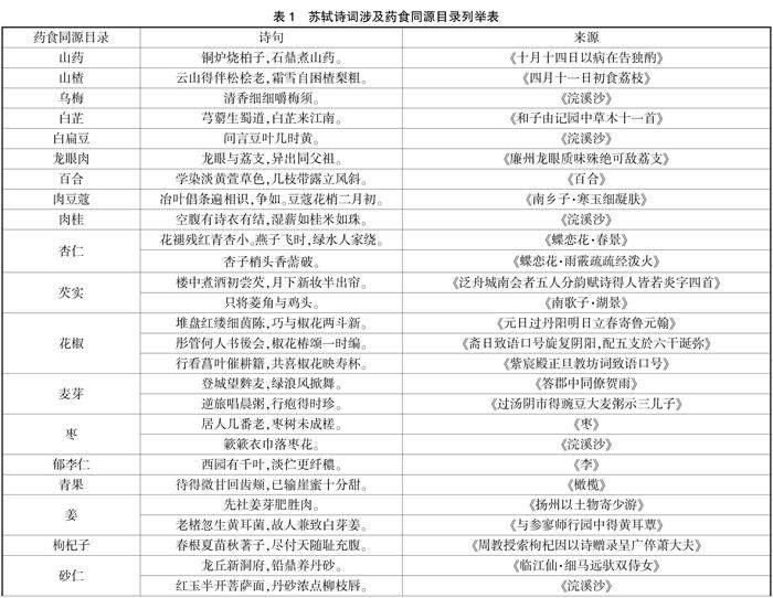 文豪苏轼诗词中药食同源文化研究
