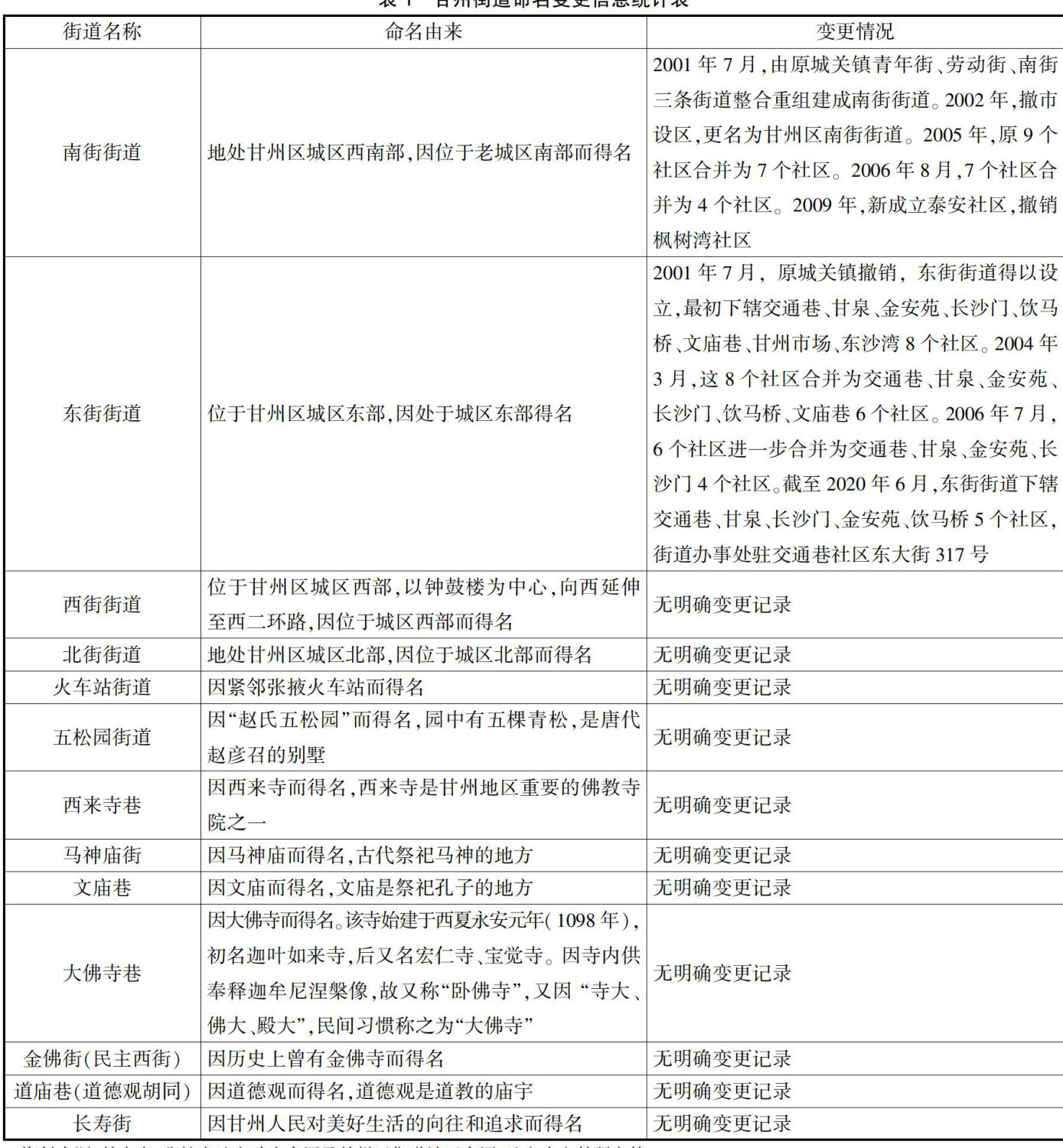 基于《乾隆甘州府志》的明清以来甘州城区街道名称演变与文化保护研究