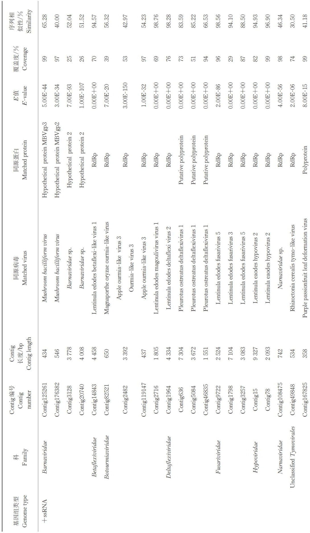 4类食用菌中RNA病毒的检测和种类分析