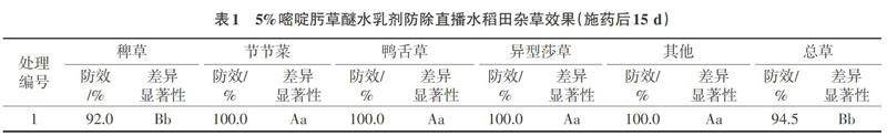 5%嘧啶肟草醚水乳剂防除直播水稻田一年生杂草试验